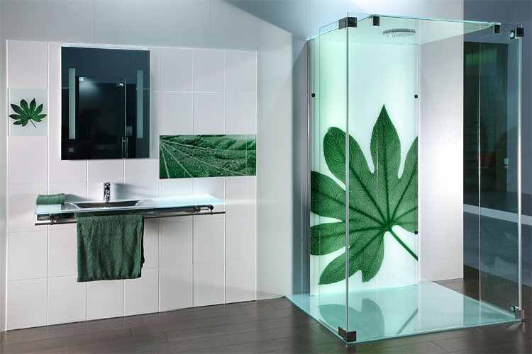 De cele mai multe ori cand vine vorba despre o baie, majoritatea oamenilor se gandesc la culori, la ce fel de texturi si nuante sa aleaga pentru faianta si gresie. Dar nu se gandesc ca faianta poate fi inlocuita cu placari de sticla. In acest fel scapam de rosturile dintre placile de faianta care sunt mai greu de curatat si de multe ori inestetice. Cu aceste placari te poti juca oricand cu diferite culori si texturi. Spre exemplu am avut un client care si-a dorit ca in zona de dus sa creeze efectul de relaxare, asa ca in acea zona a ales sa placheze peretele cu sticla printata, credeti ca ar fi reusit sa obtina acest aspect daca ar fi folosit faianta? Sa nu mai vorbim de montaj; pentru a monta gresia este nevoie de multa munca, mediul de lucru nu este tocmai placut, cu praf, mult mizerie, iar la finalul montajului ansamblul de placi nu va parea omogen si va fragmenta visual spatiul. Pe cand o placare cu sticla poate dura de la doua la patru ore, iar la final montajul este mult mai placut ochiului, mult mai ordonat. Apoi, pentru ca aceasta zona de dus sa fie reintregita, clientul nostru a ales sa opteze pentru un paravan de dus tip “walk-in”. Acesta este un paravan independent, dintr-o bucata, care se monteaza direct pe pardoseala, iar evacuarea apei se realizeaza cu rigole de dus.